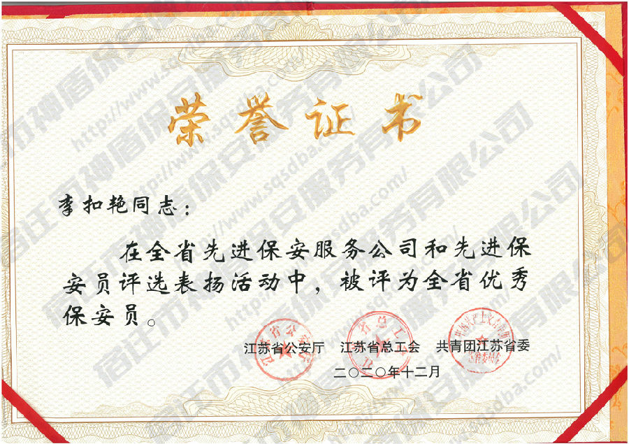 保安隊(duì)員李扣艷獲得"江蘇省五一勞