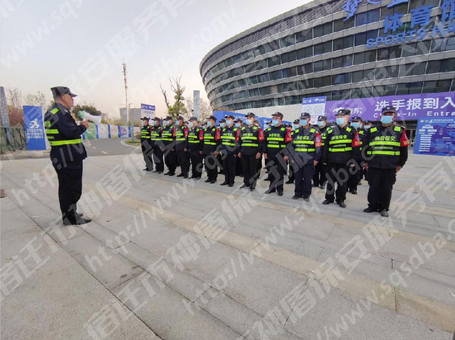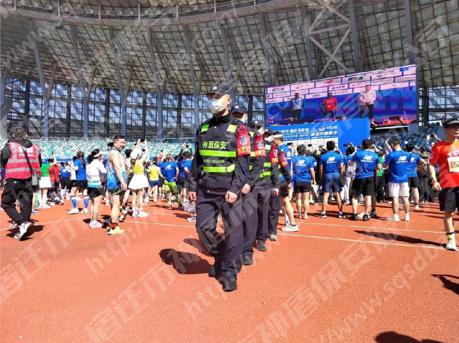 為全力配合公安機關做好2023京東宿遷萬人馬拉松安全保衛(wèi)工作,3月31日-4月2日,國有宿遷市神盾保安服務有限公司出動500名保安員,圓滿完成此次12000人參賽馬拉松活動的物資裝備看護、賽道安全值守等現(xiàn)場秩序維護工作任務,確保本次賽事有條不紊順利進行。