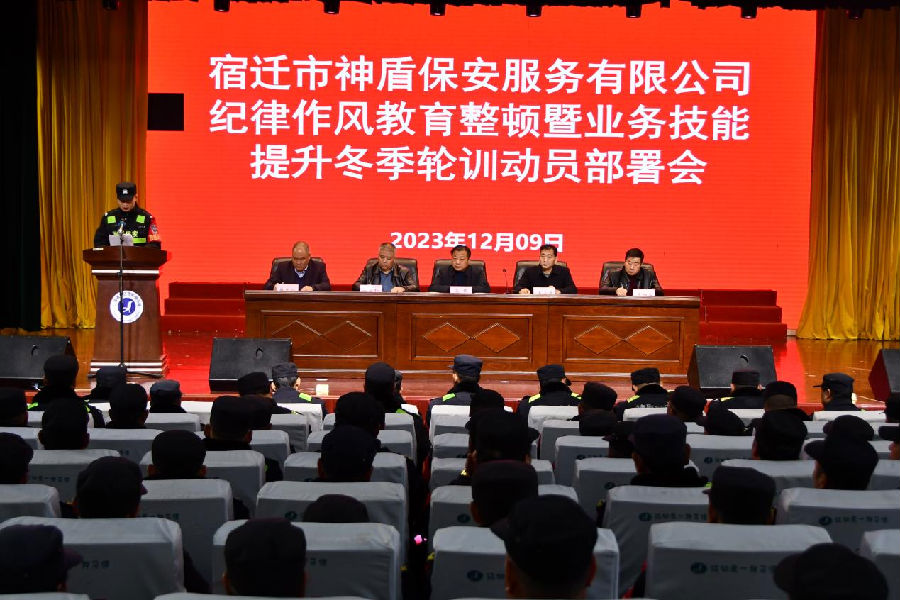 為進(jìn)一步強(qiáng)化隊(duì)伍管理,不斷增強(qiáng)員工遵紀(jì)守法、遵章守規(guī)的自覺(jué)性、主動(dòng)性,全面促進(jìn)保安隊(duì)伍素質(zhì)和保安服務(wù)質(zhì)態(tài)“雙提升”,12月9日,宿遷市神盾保安服務(wù)有限公司組織召開(kāi)“紀(jì)律作風(fēng)教育整頓暨業(yè)務(wù)技能提升冬季輪訓(xùn)”主題教活動(dòng)動(dòng)員部署會(huì),活動(dòng)為期60天時(shí)間。公司黨委成員、監(jiān)管領(lǐng)導(dǎo)、管理骨干、員工代表共350余人參加了會(huì)議。