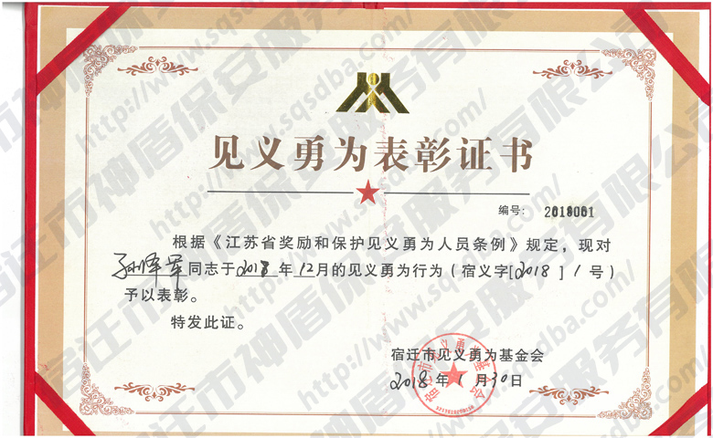 您所在位置:首頁 > 善行義舉 > 保安員見義勇為獲獎證書