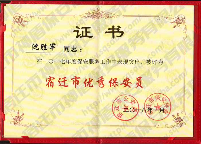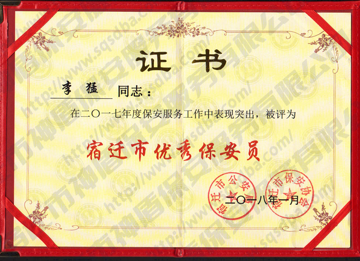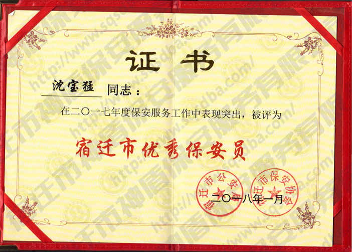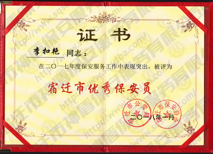 您所在位置:首頁 > 保安之星 > 2017年度宿遷市優(yōu)秀保安員