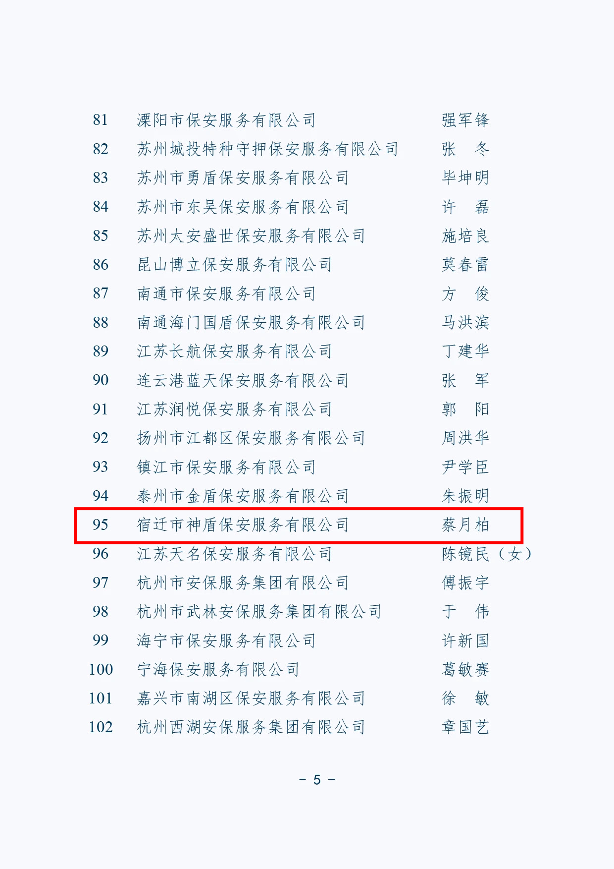 2024年11月13日,中國保安協(xié)會(huì)第五次會(huì)員代表大會(huì)暨第五屆理事會(huì)第一次會(huì)議在北京召開,會(huì)議選舉產(chǎn)生了第五屆理事會(huì)理事。宿遷市神盾保安服務(wù)有限公司當(dāng)選為中國保安協(xié)會(huì)第五屆理事單位,全市唯一,也是宿遷建(地級(jí))市以來保安行業(yè)首次入選中國保安協(xié)會(huì)理事單位。